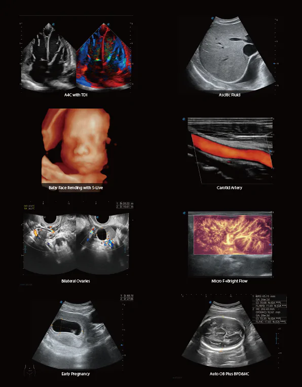 - SR Flow: Инновационная технология доплера, которая улучшает обнаружение низкоскоростного кровотока и повышает пространственное разрешение для получения реальной гемодинамической информации.